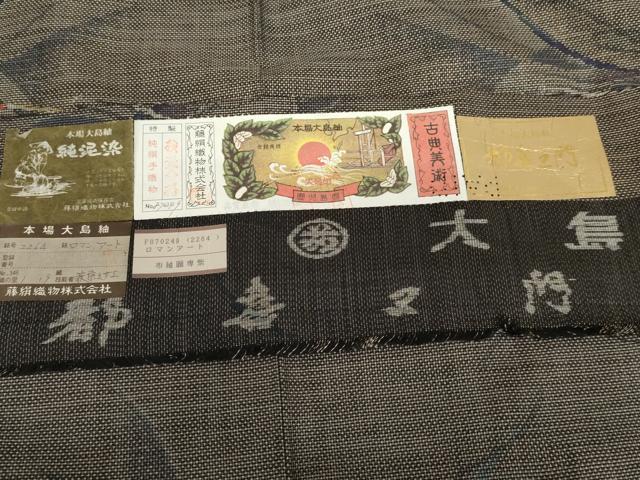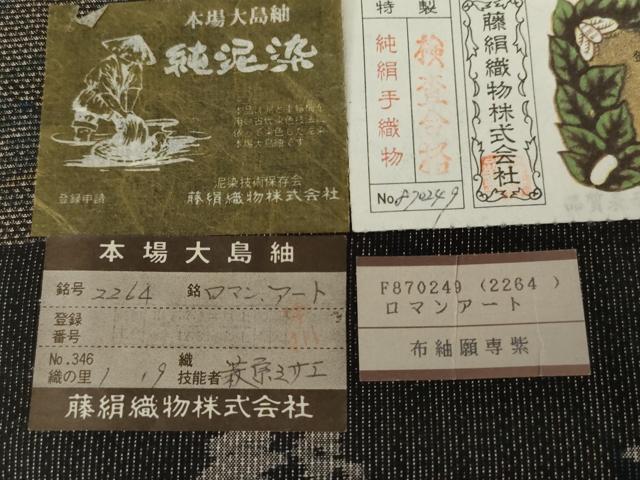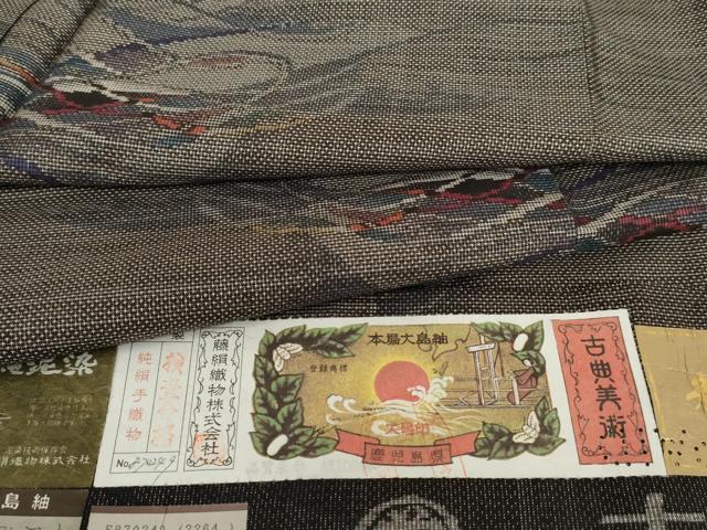 Heiwaya Kimono ● Tokiemon Authentic Oshima Tsumugi Pure Mud Dye Katas 7-Mark Kasuri Total Kasuri Roman Art Fujikin Textile Made by Misae Hagiwara With Certificate of Authenticity Pure Silk Masterpiece AABG7986cs
