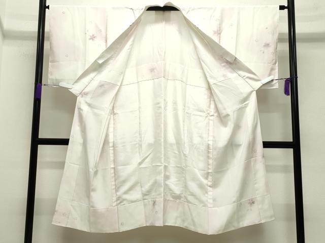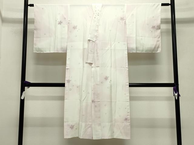 Heiwa-ya Kimono: Nagajuban (long under-kimono), unisex, shibori (dyed) with a dancing cherry blossom pattern, gradation dyeing, and embroidered half-collar. Pure silk, excellent quality. CABA9751gh