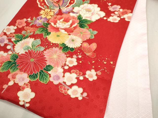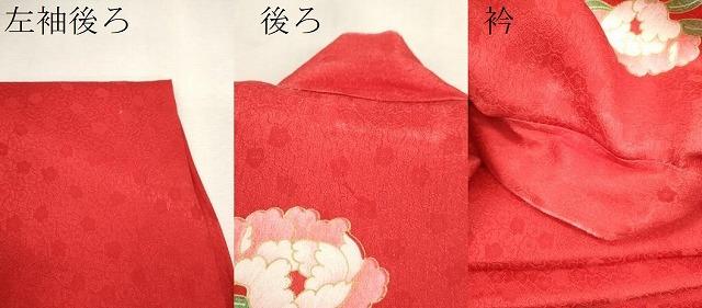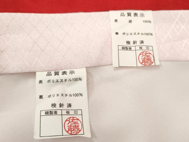 産着【表地:正絹・胴裏:化繊、襦袢:化繊】の状態は接写画像のように左袖後ろ・後身頃に薄い汚れ衿山のスレがございますが