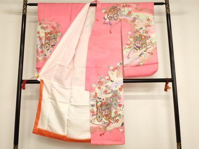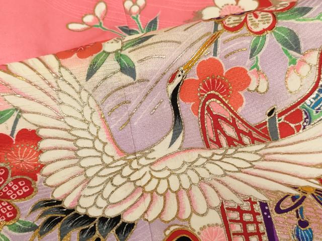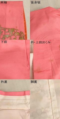産着【正絹】の状態は接写画像のように両袖・上前おくみ・衿に汚れ、後身頃・下前・衿裏・胴裏に薄い汚れがございますが