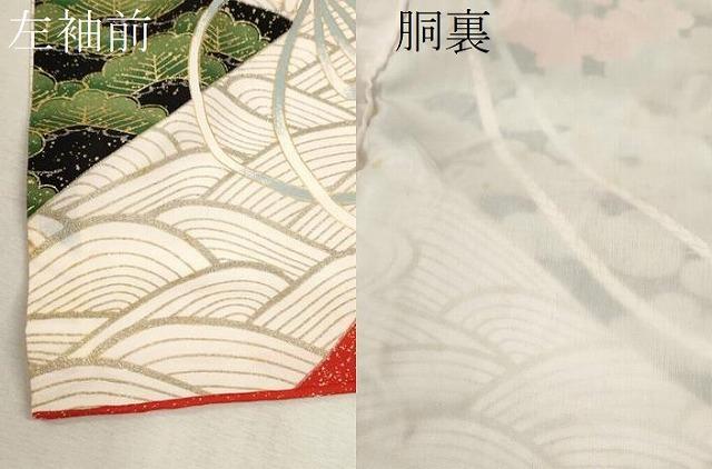 産着【表地:正絹・胴裏:化繊】の状態は接写画像のように左袖前・胴裏所々に薄い汚れがございますが