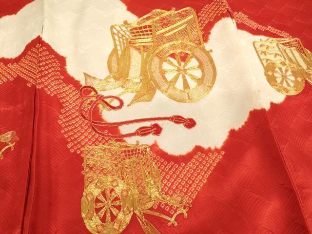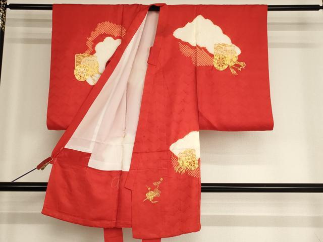 産着【正絹】の状態は接写画像のように表地所々に白場の汚れ、上前おくみ・衿・右袖前・胴裏に汚れがございますが