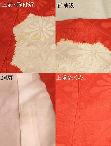 産着【正絹】の状態は接写画像のように上前おくみ・右袖後に汚れ、上前胸付近にシミ、胴裏に薄いシミがございますが