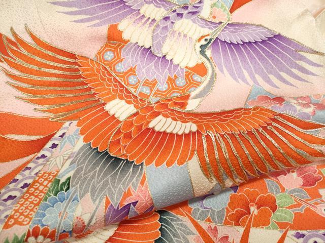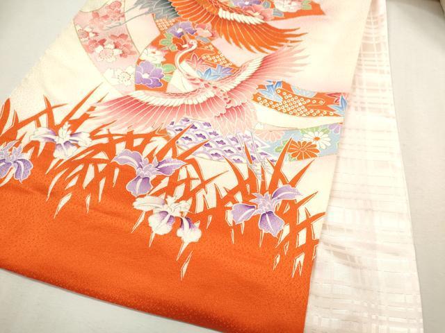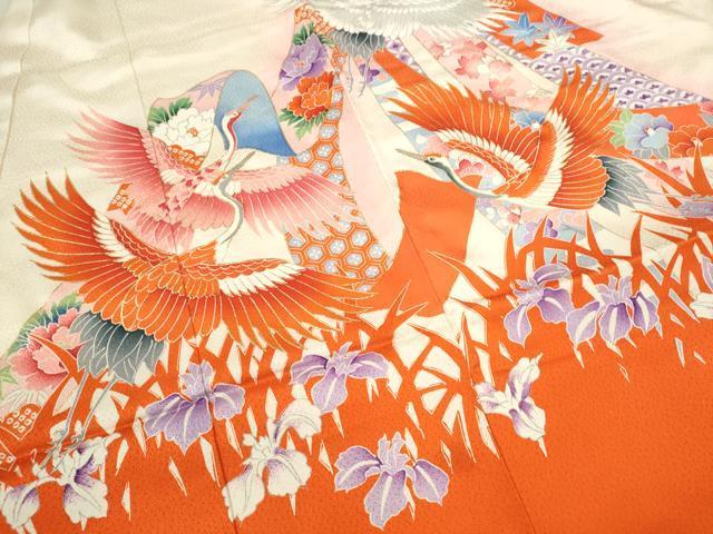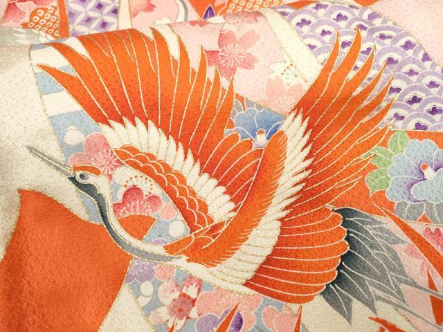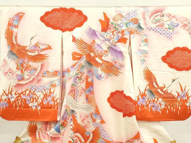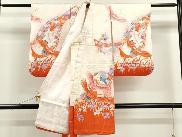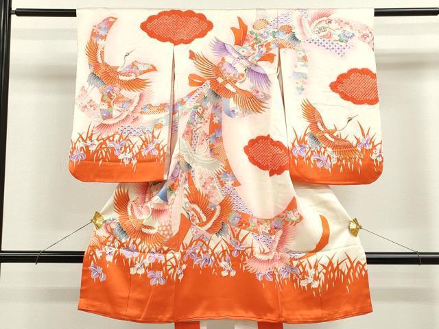 Heiwaya Kimono for Shrine Visits, Girls, Celebration Kimono, Baby Kimono, First Kimono, Noshime (Sealed Noshi), Koma Embroidery, Shibori, Flying Crane Bundled Noshi, Floral Design, Gold Accents, Excellent Quality, CAAV9260ze