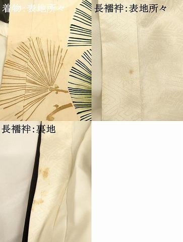 長襦袢【化繊】の状態は接写画像のように表地所々・裏地に汚れがございます。