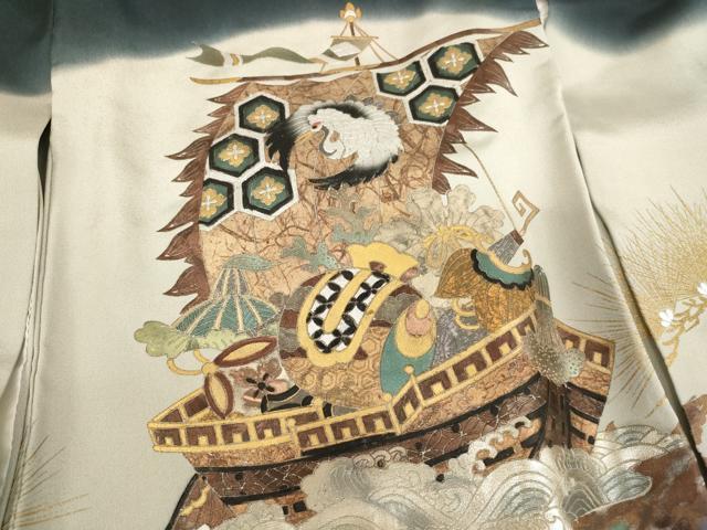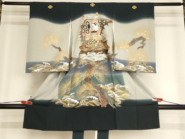 Heiwaya Kimono, Baby Boy's First Shrine Visit Outfit, Celebration Garment, Baby's First Outfit, Noshime, Treasure Ship and Pine Tree Pattern, Gradation Dyeing, Gold and Silver Accents, Exquisite Item, AABG3206ja