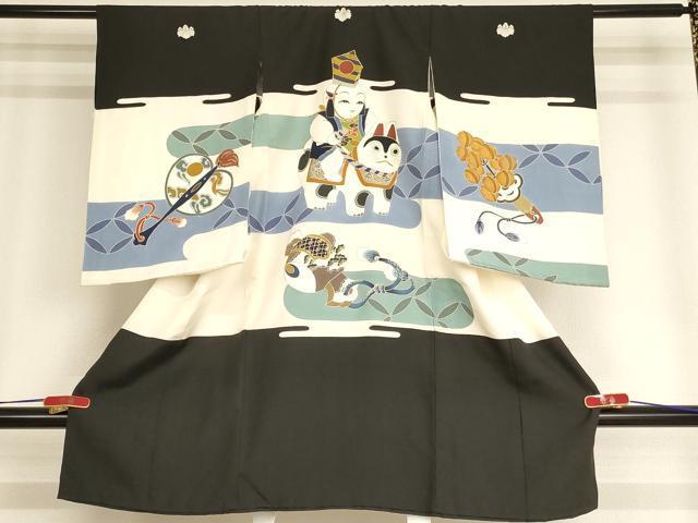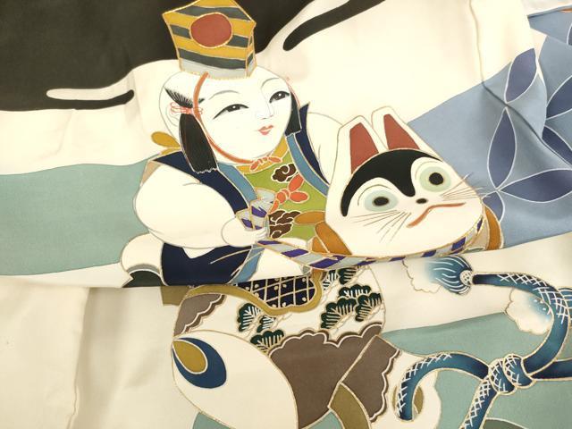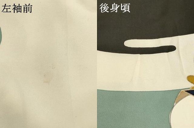 産着【正絹・五つ紋】の状態は接写画像のように左袖前・後身頃に汚れがございますが