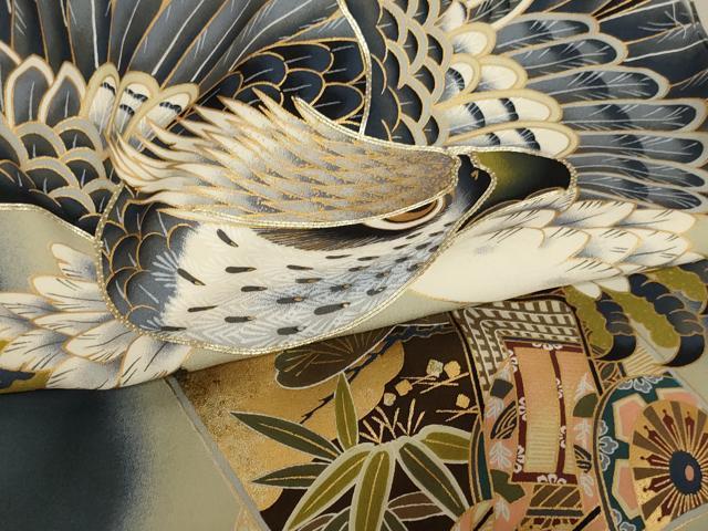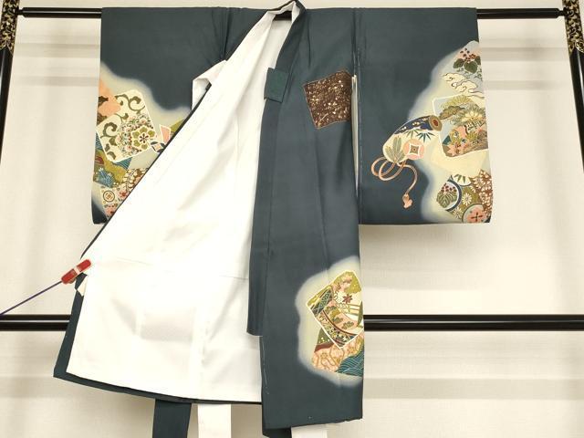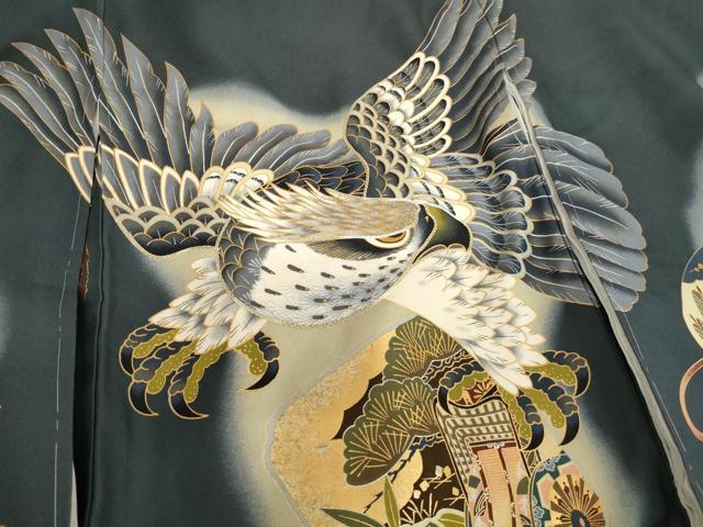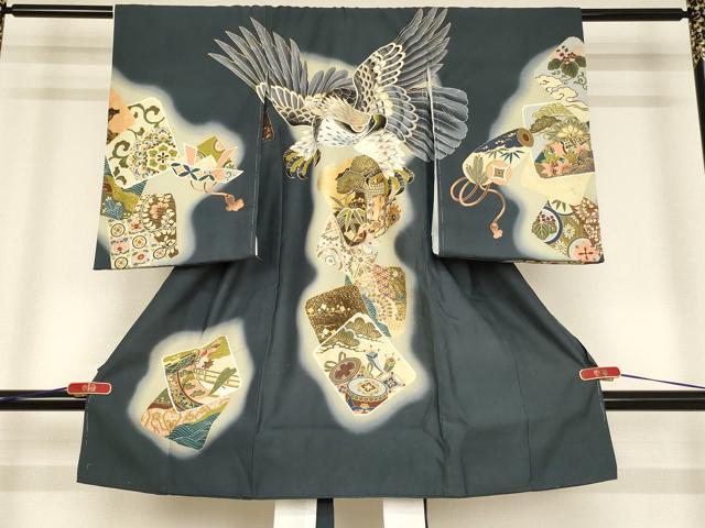 Heiwaya Kimono for Shrine Visits, Boys, Celebration Kimono, Baby Kimono, First Kimono, Noshimen, Koma Embroidery, Hawk, Shikishi Paper, Auspicious Floral Design, Gradation Dye, Gold Accents, Excellent Quality, AABB5567ja