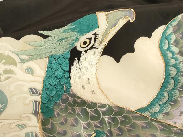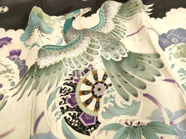 産着【正絹・五つ紋】の状態は接写画像のように表地所々・胴裏に汚れがございます。