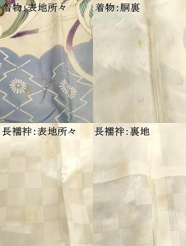 長襦袢【化繊】の状態は接写画像のように表地所々・裏地に汚れがございます。
