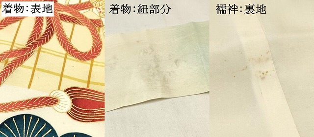 状態は接写画像のように表地所々・紐部分・襦袢裏地に薄い汚れがございます。