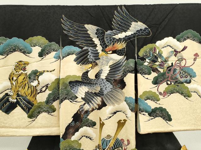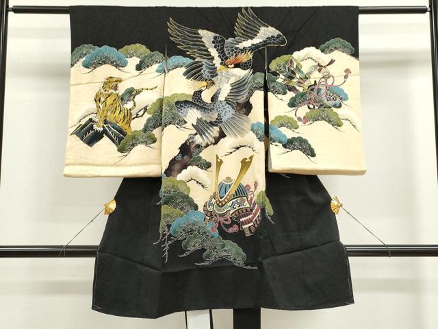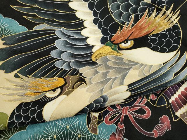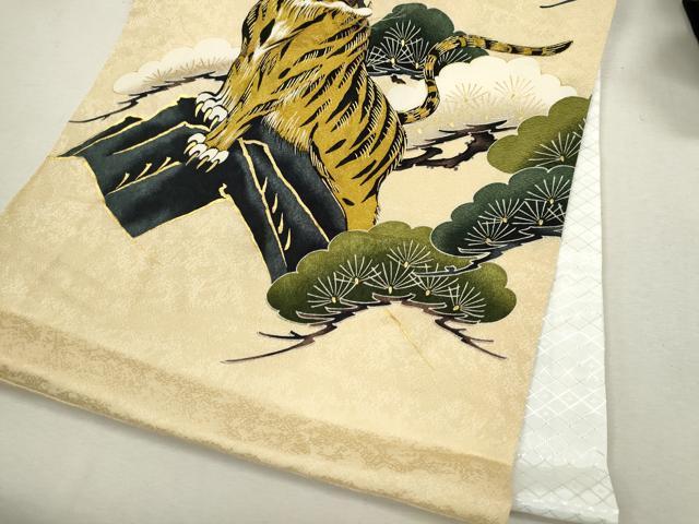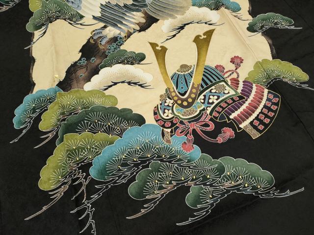 産着【表地:正絹・胴裏:化繊、襦袢:化繊】の状態は接写画像のように右袖後ろに薄い点シミがございますが