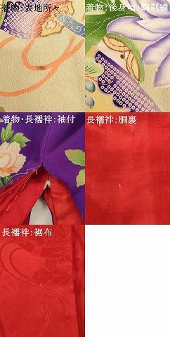 長襦袢【正絹】の状態は接写画像のように袖付に糸解け、胴裏に汚れ・繊維の飛び出し、裾布に汚れがございますが
