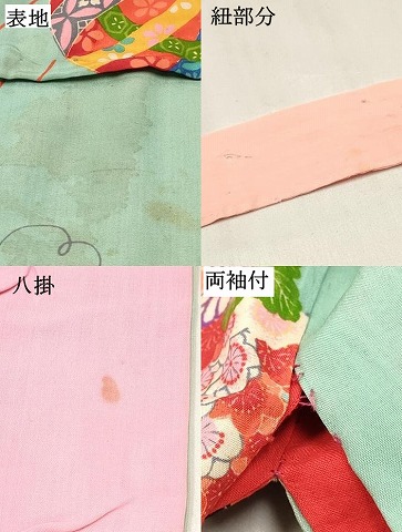 状態は接写画像のように表地所々・紐部分・八掛に薄い汚れ、