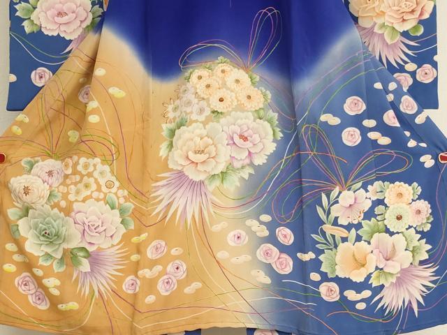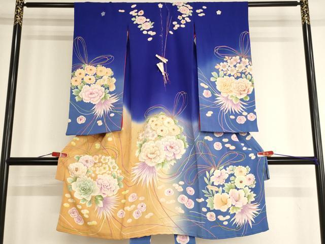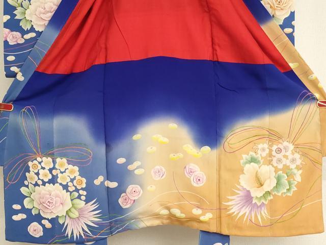 Heiwaya Antique Kimono - Taisho Romance Style - Shichi-Go-San (7-5-3) Ceremony - Girl's 5-Year-Old - Celebration Kimono - Four-Piece Set - Hand-Painted Embroidery - Floral Pattern - Gradation Dye - Pure Silk - Exquisite Item - AABG3233ja