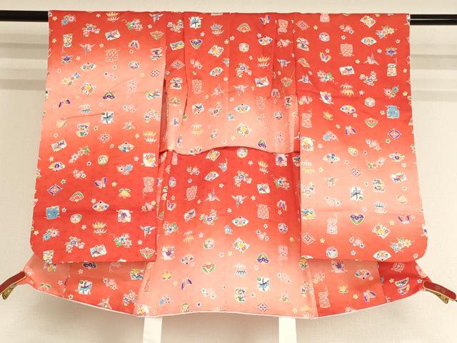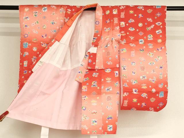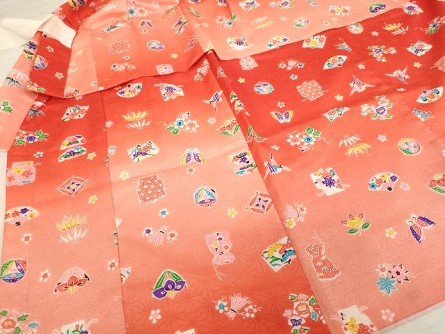 Heiwaya Kimono Shichi-Go-San (7-5-3) Ceremony Girl's 3-Year-Old Celebration Kimono, Mitsumi style, Auspicious Flower and Butterfly Pattern, Gradation Dye, Pure Silk, Exquisite Item, AABG3397ja
