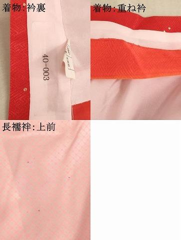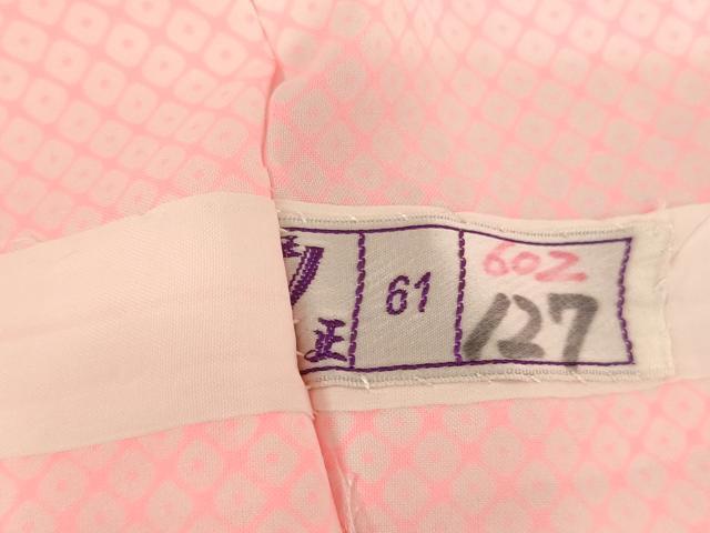 着物【化繊】の状態は接写画像のように衿裏にシール、重ね衿に汚れがございますが