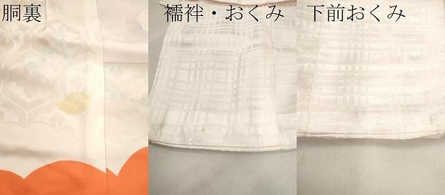 着物【表地:正絹・胴裏:化繊】の状態は接写画像のように胴裏に薄い汚れがございますが