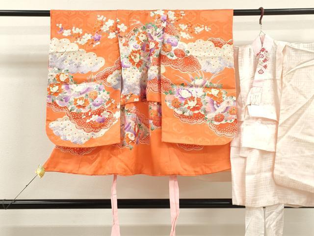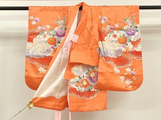 Heiwaya Kimono Set for Shichi-Go-San Ceremony, 3-Year-Old Girl, Three-Piece Kimono Set with Nagajuban and Asuka Flower Design, Gold Accents, Excellent Quality, CAAT6074ze