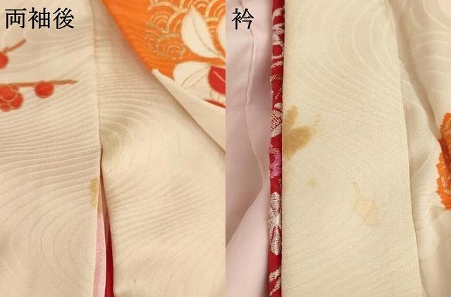 着物【正絹・比翼仕立て】の状態は接写画像のように両袖後・衿に汚れがございますが