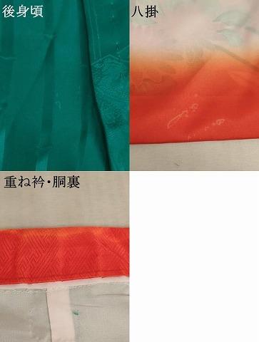 着物【正絹】の状態は接写画像のように後身頃に薄い汚れ、八掛・胴裏・重ね衿に汚れがございますが