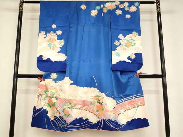 Heiwaya Kimono for Shichi-Go-San, Girl's 7th Year, Celebration Kimono, Yotsumi, Crossing Bridge Decorative Flower Design, Gold Finish, AABB5580ja