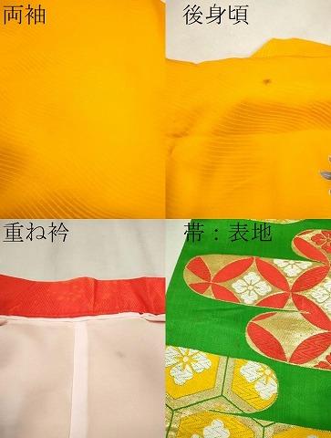 着物【表地:正絹・胴裏:化繊】の状態は接写画像のように両袖・後身頃・重ね衿に薄い汚れがございますが