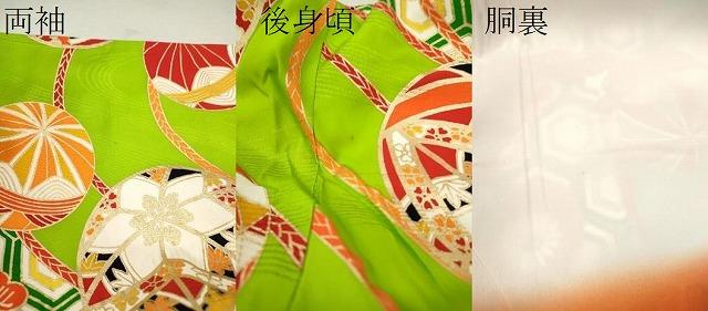 着物【表地:正絹・胴裏:化繊】の状態は接写画像のように両袖に薄い点シミ、後身頃・胴裏に薄い汚れがございますが