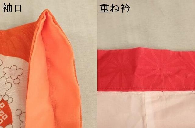 着物【化繊】の状態は接写画像のように袖口・重ね衿に汚れがございますが