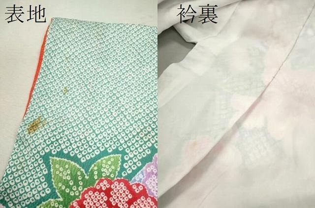 着物【表地:アセテート90%、ナイロン10%・胴裏:アセテート】の状態は接写画像のように表地所々・胴裏に薄い汚れがございます。