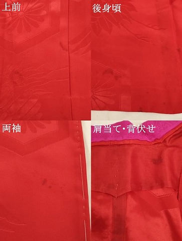 長襦袢【正絹】の状態は接写画像のように上前・後身頃・両袖・肩当て・背伏せに汚れがございますが