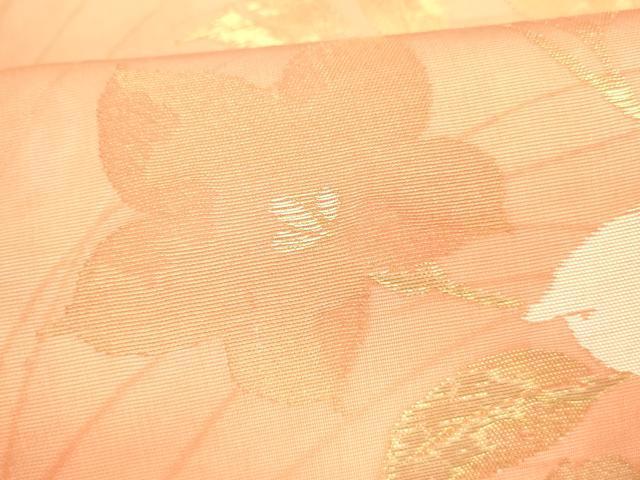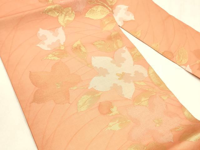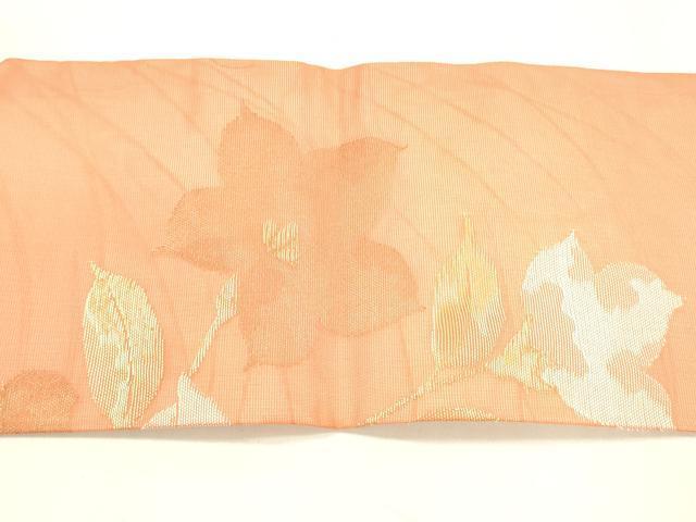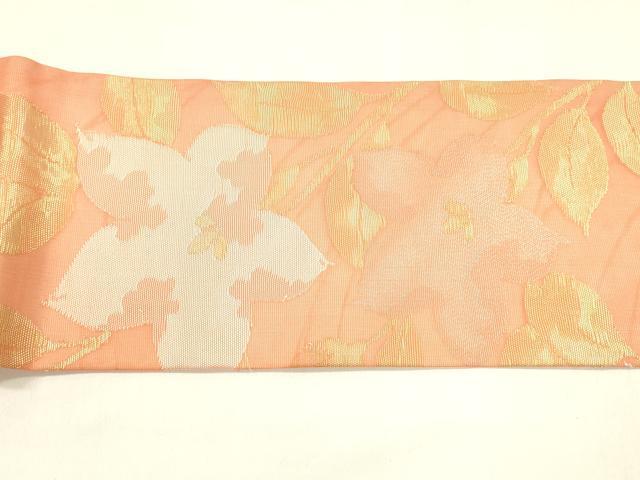 Heiwa-ya Kimono * Summer 9-inch Nagoya Obi with Floral Design, Gold Thread, Pure Silk, Excellent Item, DABA0366cm