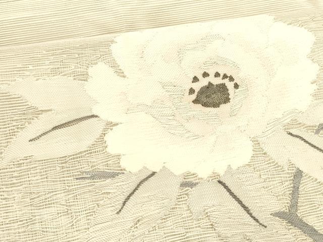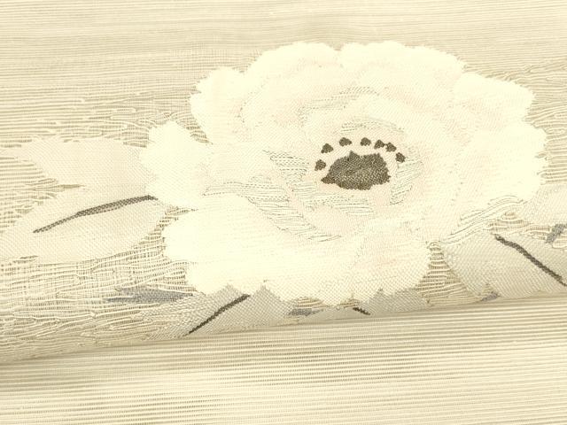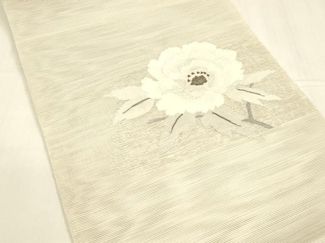 Heiwa-ya Kimono * Summer 8-inch Nagoya Obi, Peony Design, Pure Silk, Excellent Quality, DABA05, 17cm