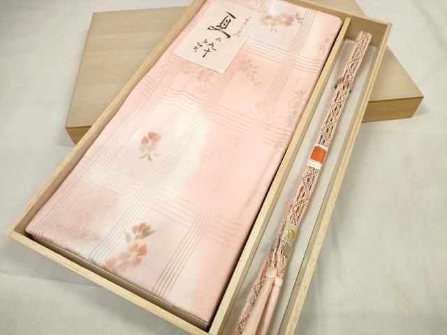 Heiwa-ya Kimono * Summer Kimono Accessories, Obijime and Obiage Set, Vertical Silk, Summer Style, Pink Design, Silver Accents, Excellent Condition, Unused, DAAV8482zzz