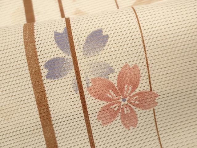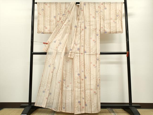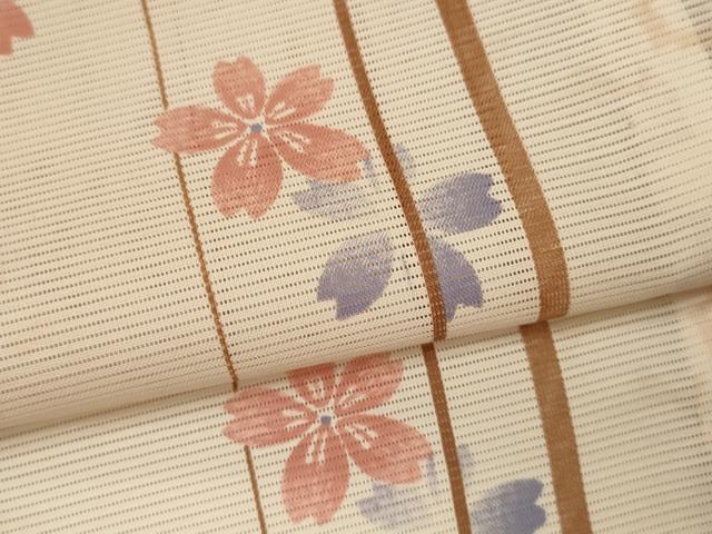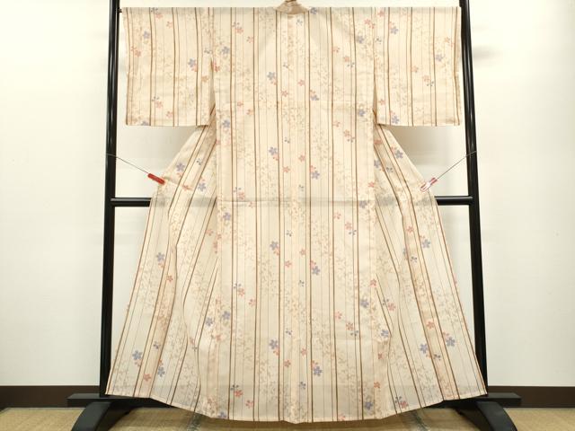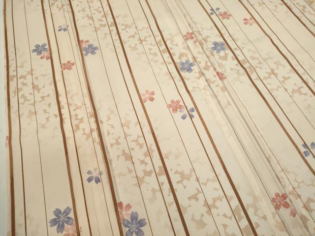 Heiwa-ya Kimono * Summer Kimono, Small Pattern, Silk, Striped, Dancing Cherry Blossom Design, Washable, Unused, CABB2094ze