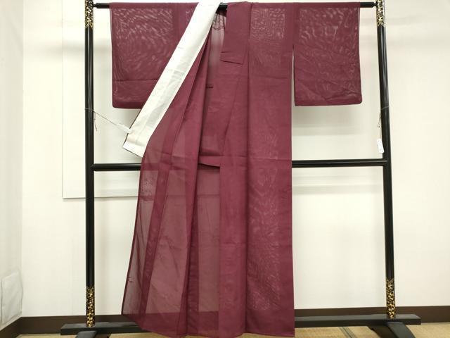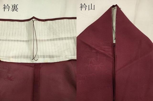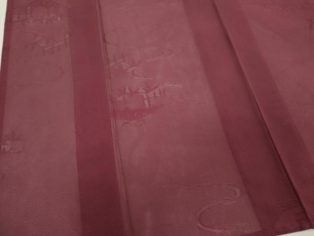 Heiwa-ya Kimono * Summer Plain Eba Homongi Kimono (Visiting Kimono) - Silk with Michinaga Landscape Pattern, Dark Red, Excellent Condition, CABB1737ou