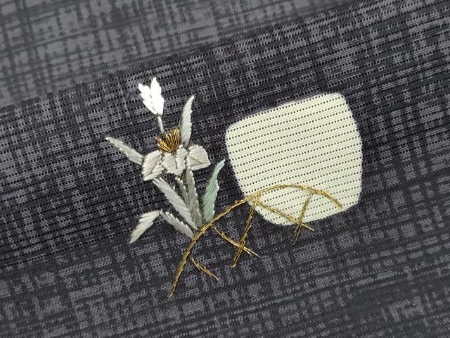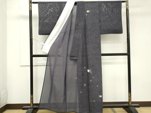 Heiwa-ya Kimono * Summer Visiting Kimono, Silk, Embroidered with Floral and Plant Patterns, Gold Thread, Pure Silk, Excellent Quality, CABB1714ou