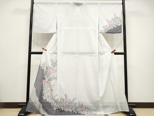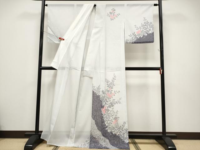 Heiwaya Kimono * Summer Kimono, Visiting Kimono, Ro (thin silk fabric), Branch and Flower Pattern, Washable Kimono, CABF2483tx