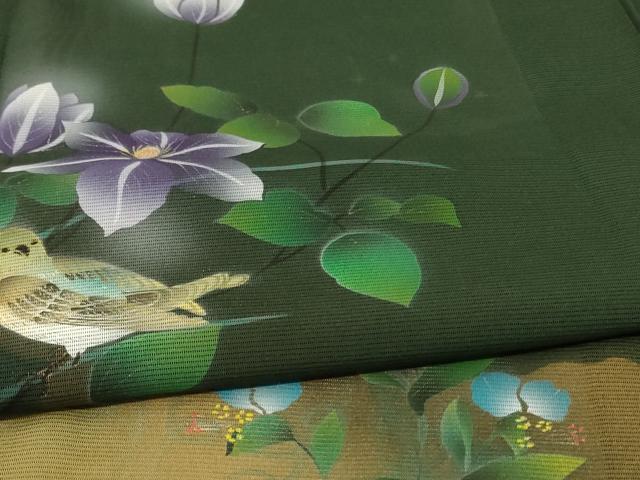 Heiwa-ya Kimono * Summer Visiting Kimono, Silk, Flower and Bird Design, Gradient Dye, Gold Accents, Excellent Quality, AABE2662jd