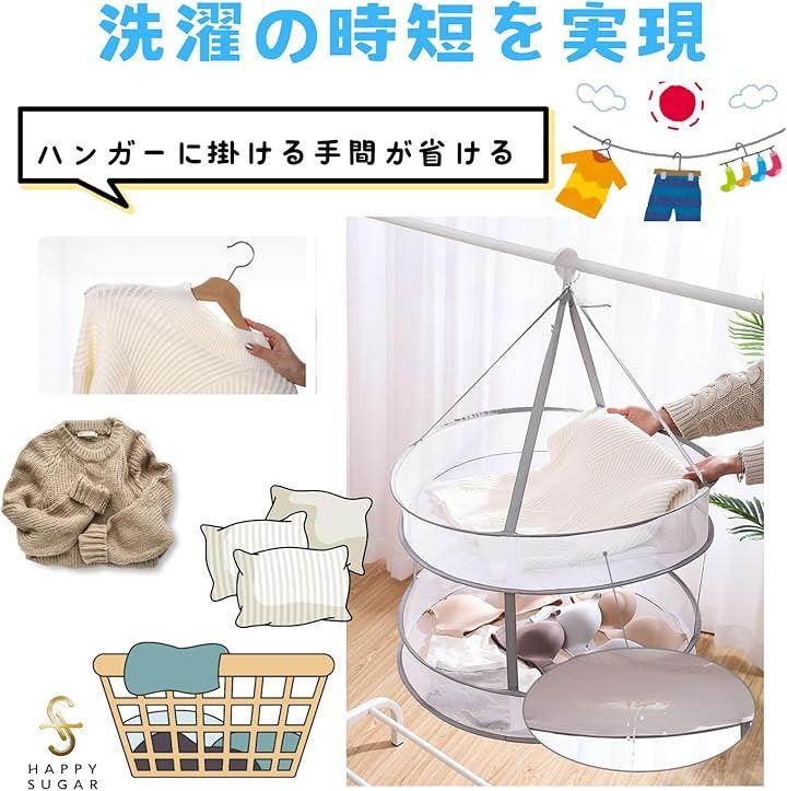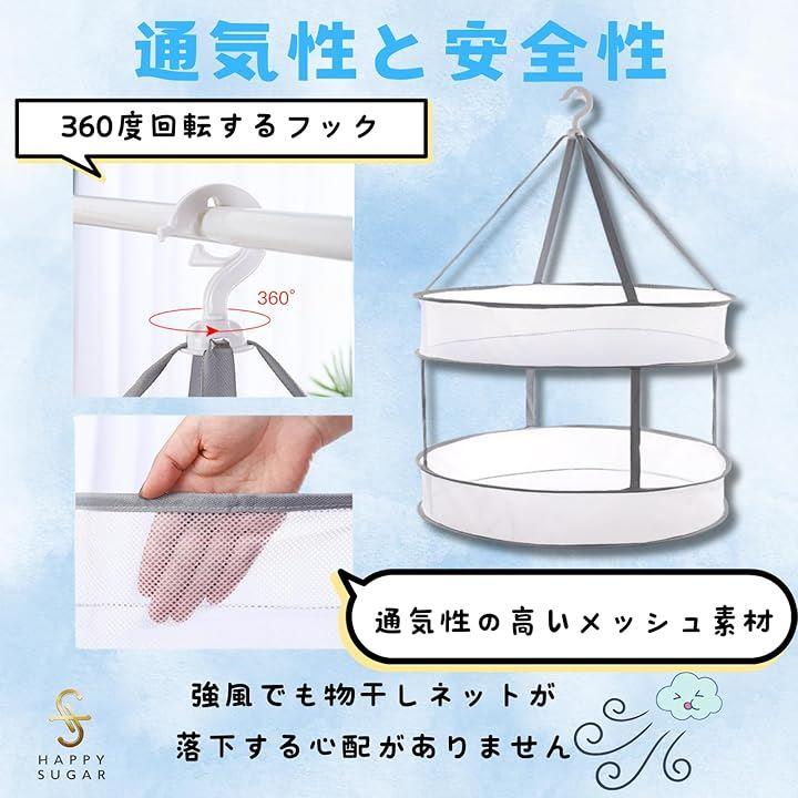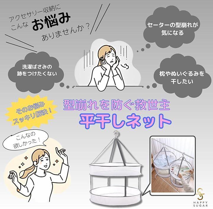 この平干しネットは、衣類を平置きで干すことで、ハンガー跡や洗濯バサミの跡がつくことを防ぎます。