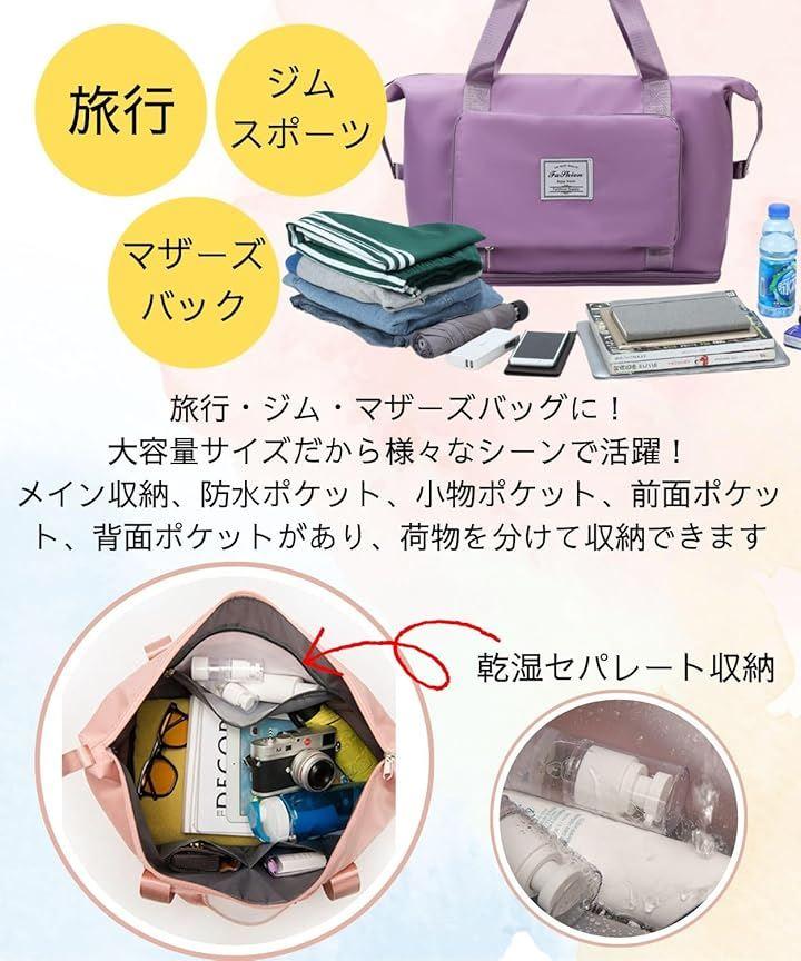 容量切り替え可能な多機能ボストンバッグ:手持ち・ショルダー・キャリーオンバッグとして使える3WAY仕様の旅行バック。