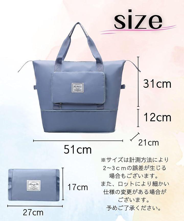 容量UP時:縦「43cm」x横「51cm」x奥行「21cm」 コンパクト収納時:縦「17cm」x横「27cm」重量:約470g 使いやすさと大容量を兼ね備えた折り畳み式ボストンバックで、国内旅行や海外旅行、日常使いまで幅広くお楽しみいただけます。