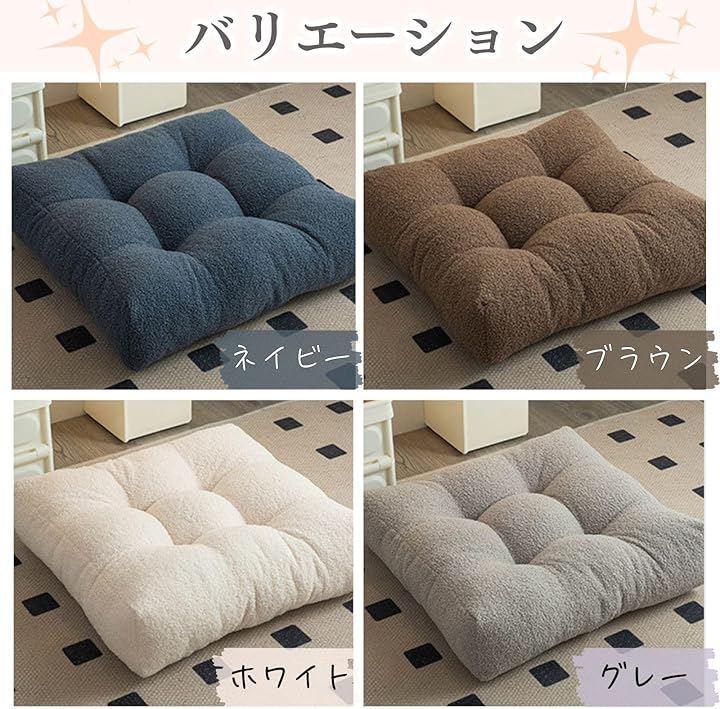 「本体サイズ/商品詳細」*本体:横45cmx縦45cm、厚み12cm *カラー:グレー、ネイビー、ホワイト、ブラウン *厚めの低反発座布団で、座り心地の良い四角タイプ。
