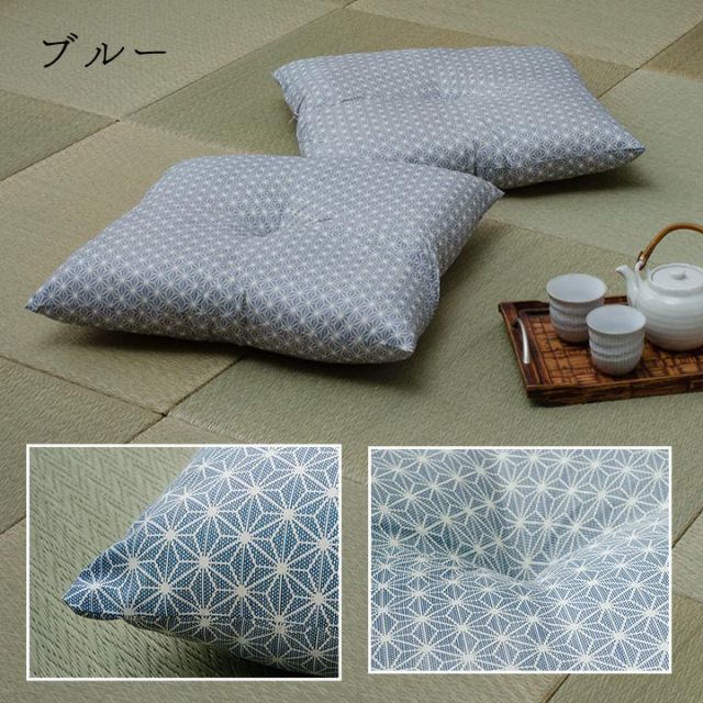 Washable Zabuton Cushions, Meisen Size, Made in Japan, Set of 2, Suitable for Guests, Japanese-style Rooms, Western-style Rooms, Japanese Pattern (Hemp Leaf), Approx. 55 x 59 cm, Set of 2 in the same color