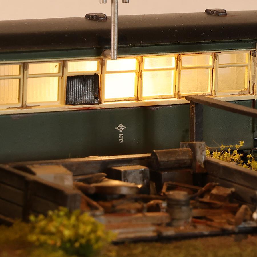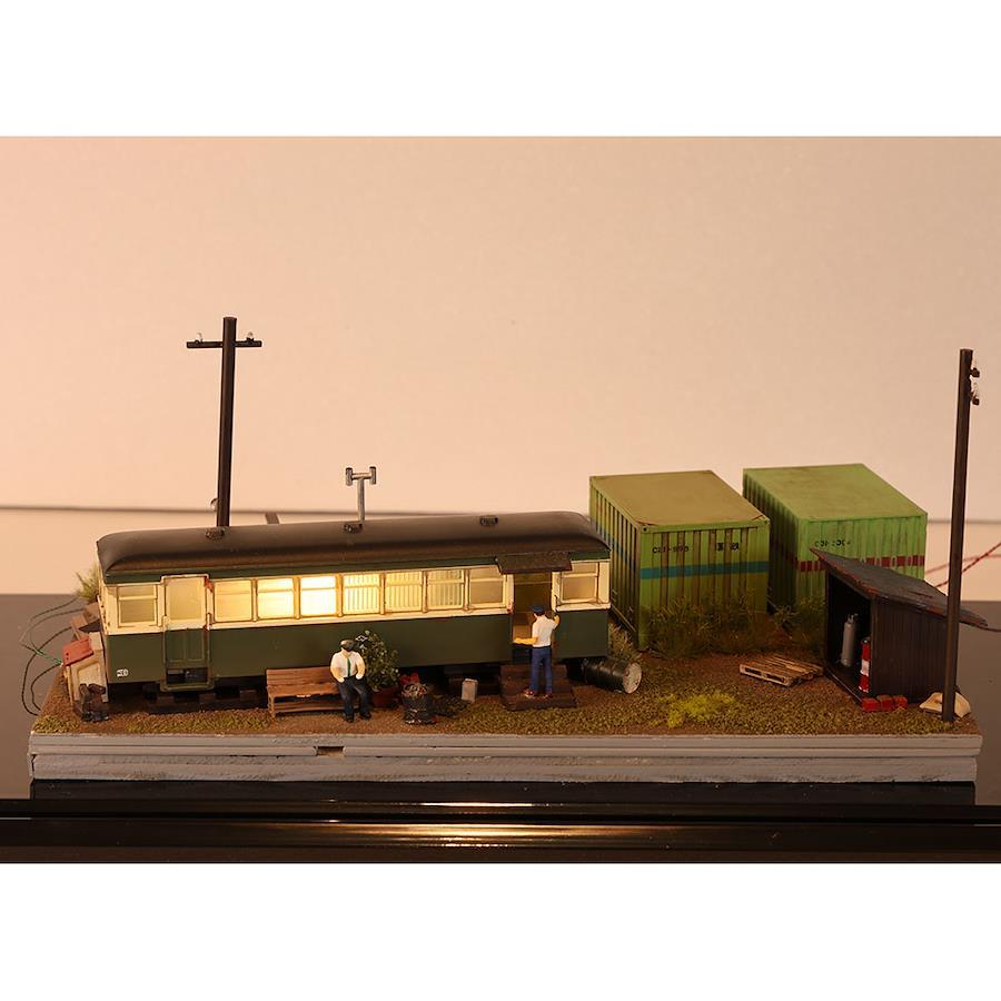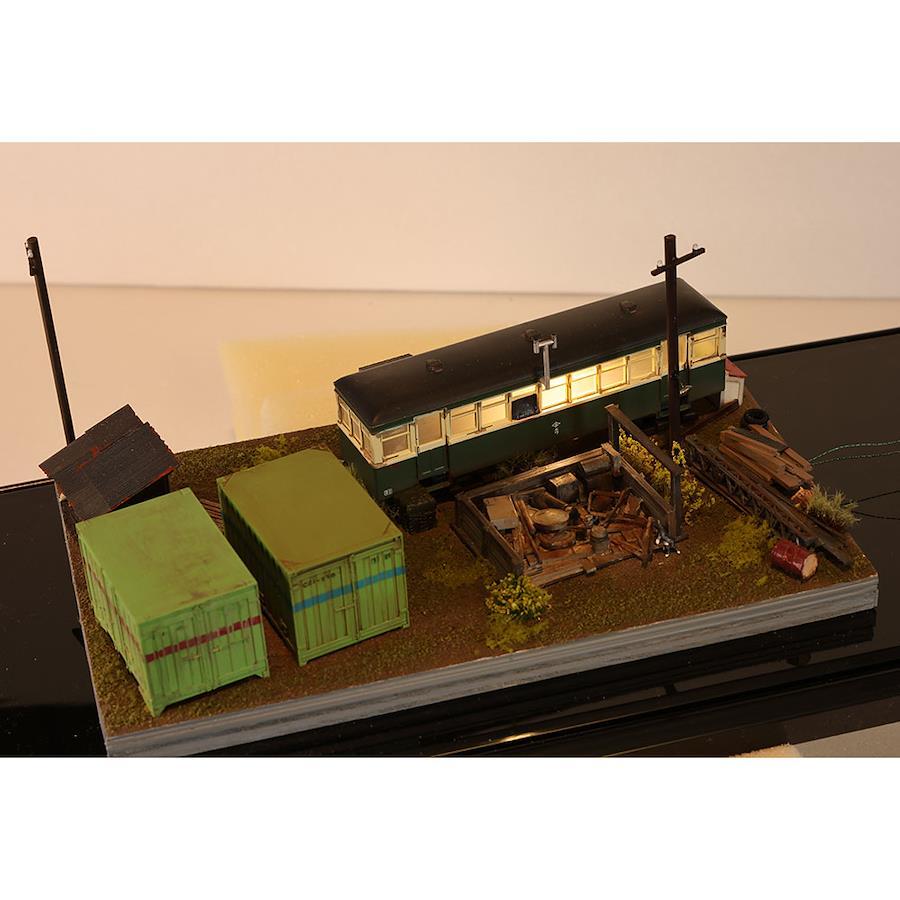備考:作品はケース台座にねじ止めで、取り外し可。ケースはアオシマ製、ケースが外しやすいように固定の爪は切断しております。材料は基本、各種プラ板を中心に使用。フィギュア、小物類は接着済です。LED 2灯電飾済み。別途電源をご用意ください。