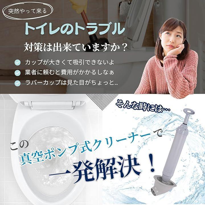 「強力吸引で詰まりを一気に解消する真空ポンプ式クリーナー」専門現場で使用される道具をベースに家庭向けに改良した真空式トイレクリーナーです。