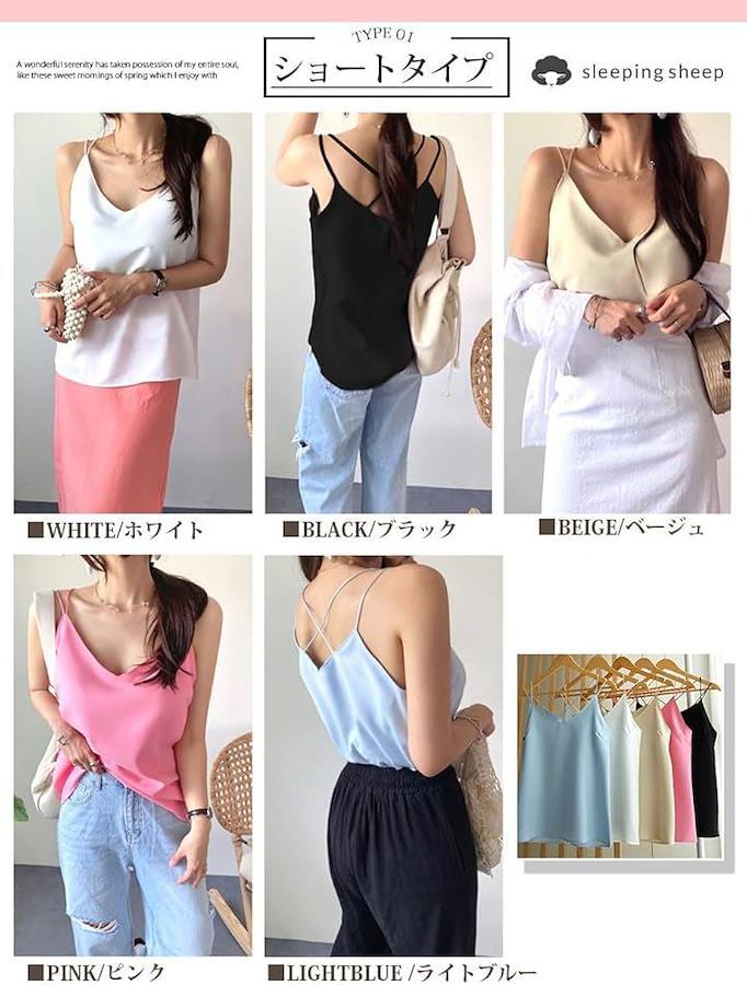 シンプルに使えて、今どき感が瞬時に手に入る細紐ストラップがが大人可愛いキャミソール。