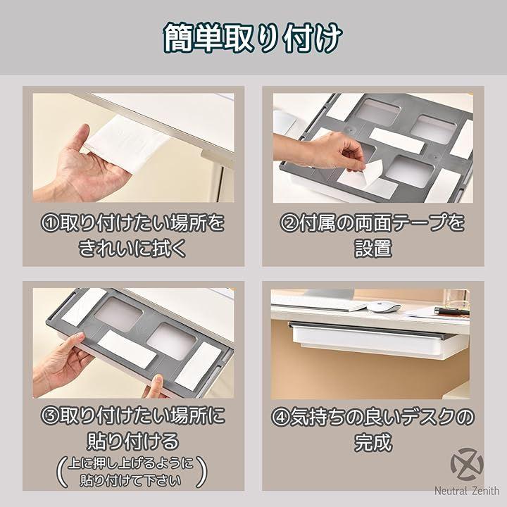 「机下スペース活用」デスクやテーブルなど机下のスペースを有効活用。あらゆる場所に設置可能な後付け引き出し。