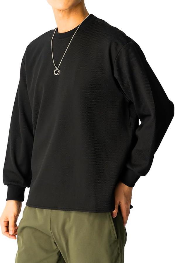 心地よいフィット感のラウンドネックのため、様々なアウターにも合わせやすいのもポイントです。