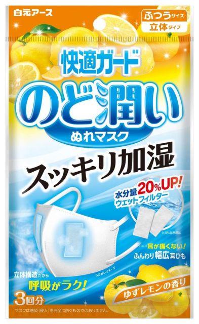 快適ガードのど潤いぬれマスクゆずレモンの香りふつうサイズ3セット入